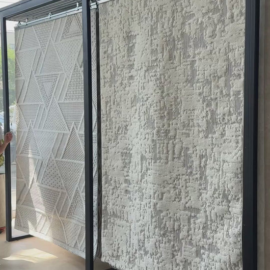 Una alfombra de estética limpia y sofisticada que se distingue por su delicado diseño en relieve. Con una base en tono blanco hueso y sutiles matices en gris, esta pieza aporta un aire moderno y atemporal, ideal para quienes buscan elegancia discreta y refinamiento en su decoración. Su diseño minimalista y equilibrado la convierte en una opción versátil que realza salas luminosas, dormitorios principales o espacios de estilo contemporáneo con un toque distintivo. Más que un accesorio decorativo, es una obra textil que transforma cualquier ambiente con serenidad y sofisticación, manteniendo siempre un carácter exclusivo.