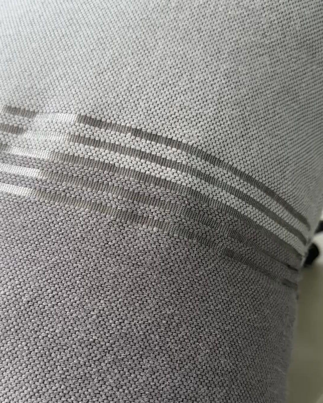 Añade un toque único y elegante a tu hogar con este exclusivo cojín tejido a mano en fibras de lana de alpaca peruana e hilos de metal plateado.