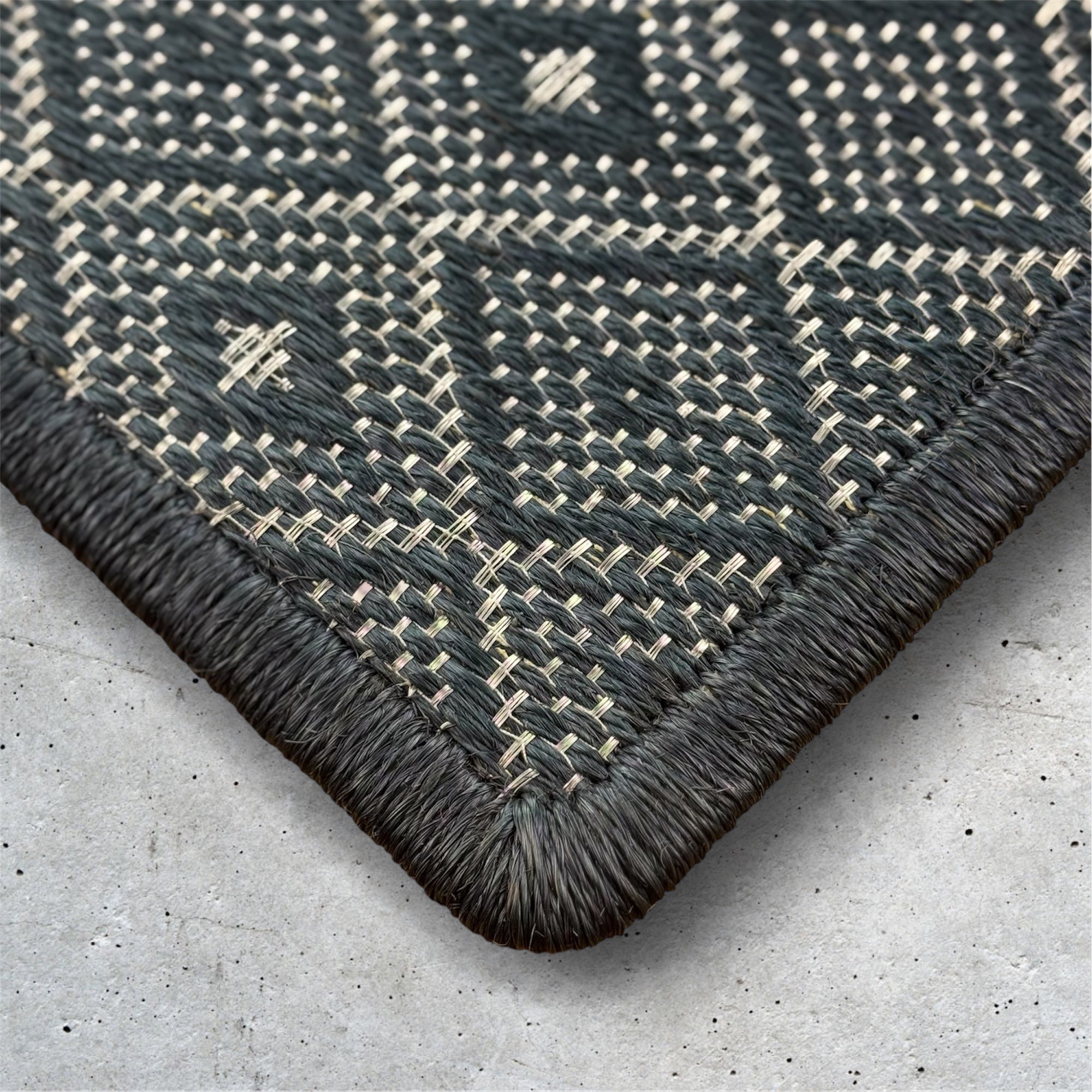 Tapete Tejido Romboidal en Fique y Metal Plata